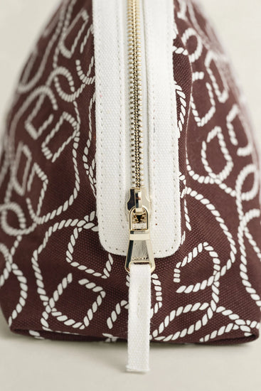 Den perfekta necessären när du reser och är på språng. Den här väskan pryds av en broderad Gant-logo på framsidan, vilket ger en stilren och sofistikerad känsla. Den är tillverkad i kanvas och har kontrasterande väv med guldfärgad dragkedja och puller.