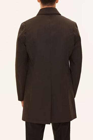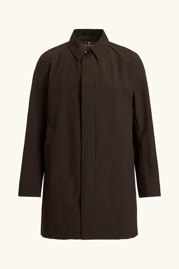 Denna klassiska Car Coat i Nylon Shell är designad för att vara ett heltäckande skalplagg till din vardag och fungera till både formell kostym och lediga jeans. Utöver det vattenavvisande och vattentäta yttertyget så har rocken tejpade sömmar i axel och rygg för att hålla dig torr i tuffare väderförhållanden. Insidan av rocken är täckt i ett slitstarkt ripstop-foder och innehåller tre innerfickor samt knappar till infästning av våra liner-västar. Nylon Shell är vårt tre-lagers skalmaterial, framtaget för att skydda mot väder och vind helt utan att kompromissa på rörlighet, andningsförmåga eller stil.