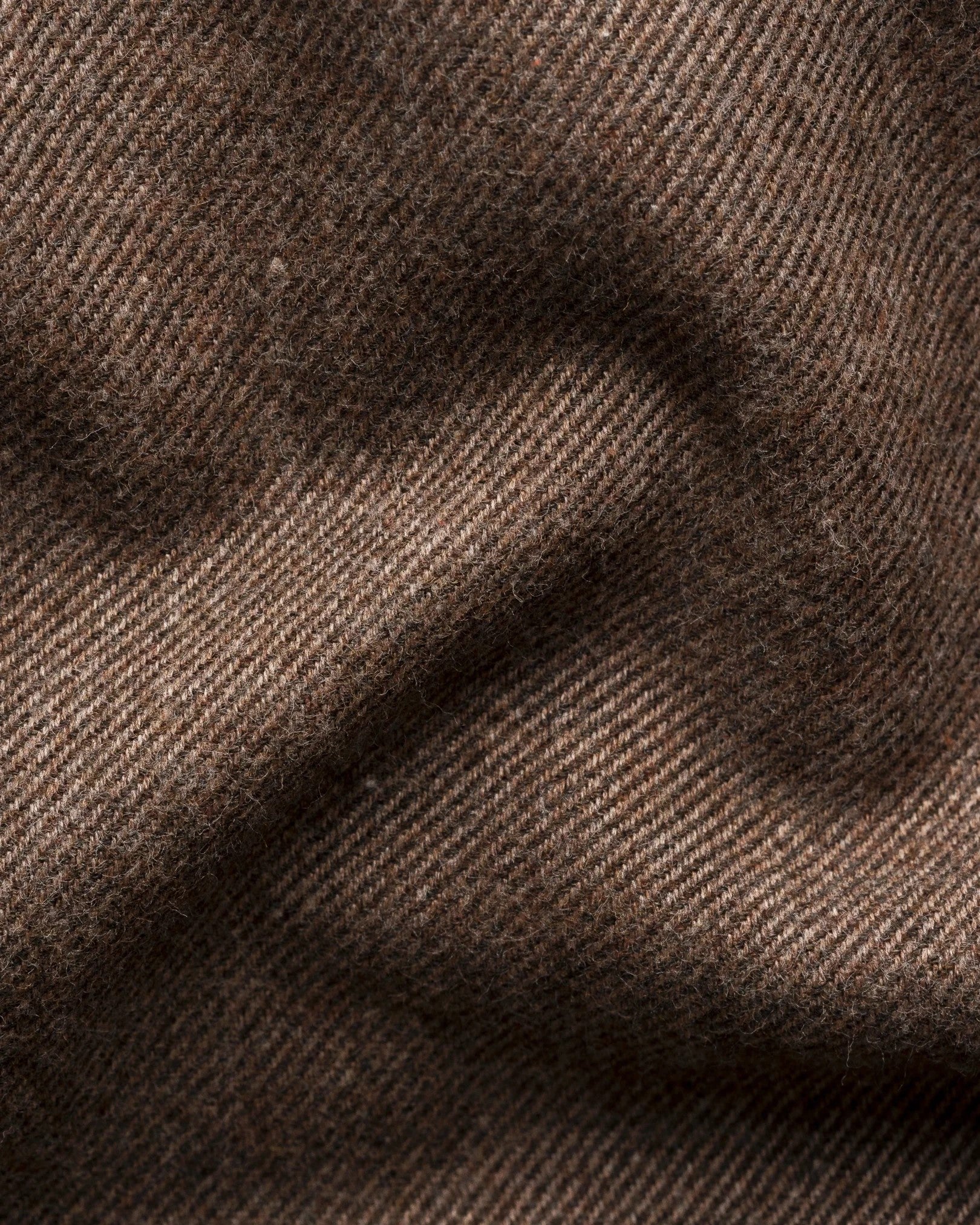 En casualskjorta i 100 % bomullsflanell, vävd i Italien av dubbeltvinnat garn och mjukt borstad för en oerhört mjuk och kashmirliknande känsla. Den solida designen framhäver twillstrukturen och de fylliga melange-tonerna. Skjortan har benfärgade knappar, spread-krage och böjd fåll. Passformen är Casual Fit, vilket gör den lätt att styla, både instoppad och oinstoppad.