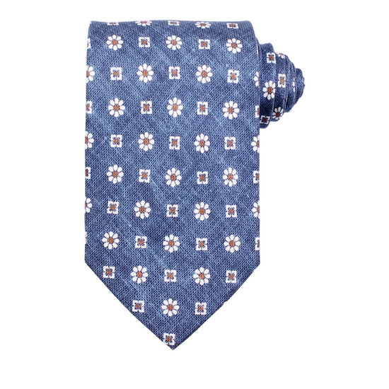 Klassisk mönstrad slips i sidentwill med en liten blomma. 8cm bred.