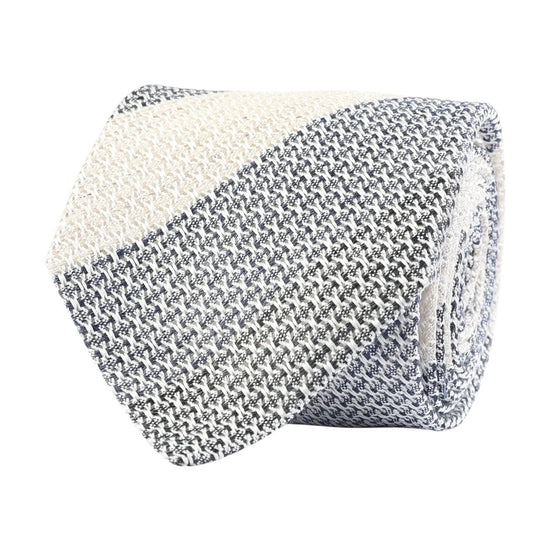 Elegant jacquardslips med blockrandigt melangemönster, vävd i exklusiv grenadin av siden- och linneblandning.