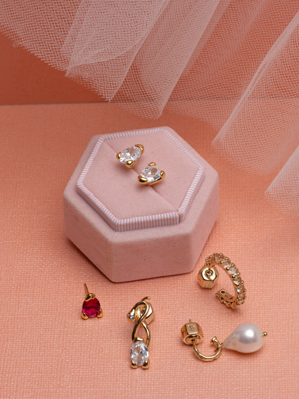 Bär dem ensamma, eller kombinera med det matchande halsbandet och ringen för en komplett look.