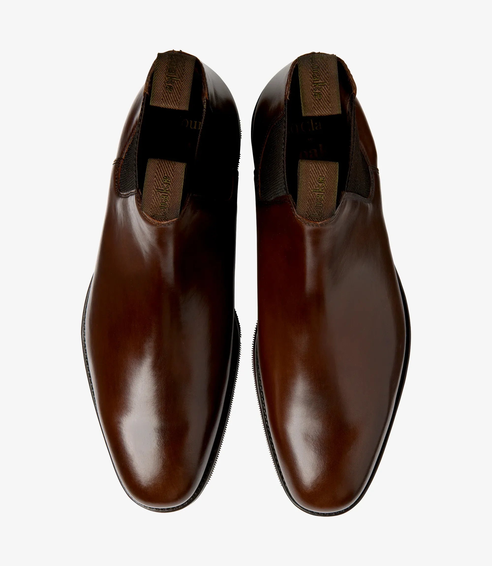 Vår Emsworth är en klassisk premium-Chelseakänga från vår Loake 1880-kollektion, med rena, moderna linjer och en förfinad siluett. Den finns i ett brett urval av förstklassiga material och är byggd på vår Capital-läst i F-vidd. Skorna har Goodyear-randsydda Shadow-gummisulor för lång hållbarhet och bra grepp, samtidigt som de behåller en nätt profil. Helt läderfodrade med innersulor i läder, tillverkade i England med traditionella metoder.