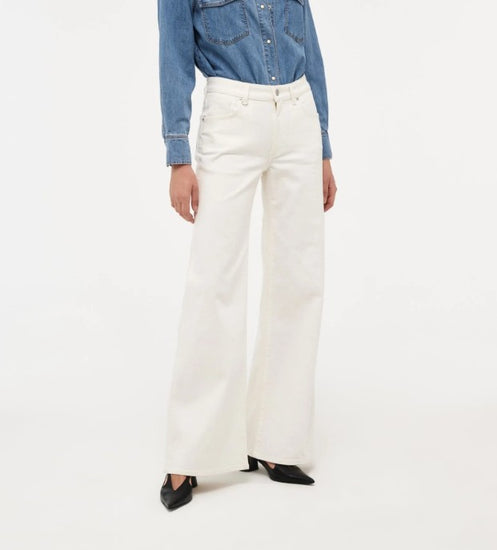 Genom att kombinera en medelhög midja med en skräddad A-linjeform och vida ben ger Eva en feminin tolkning av en lösare silhuett. Den sitter smickrande på alla rätt ställen. Finns med 32" innerbenslängd.
