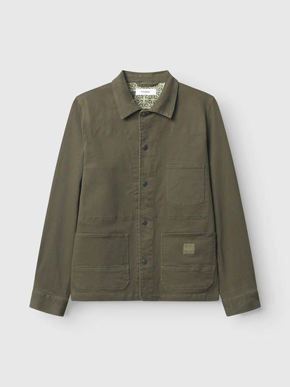 Denna workwearinspirerade overshirt är tillverkad av 97 % bomull och 3 % elastan, vilket ger hög komfort och slitstyrka. Tillverkad i plaggfärgad twill med heltäckande print på insidan av oket samt Gabba-signaturbadge på den nedre fickan. Ett perfekt tillskott till din vardagsgarderob.