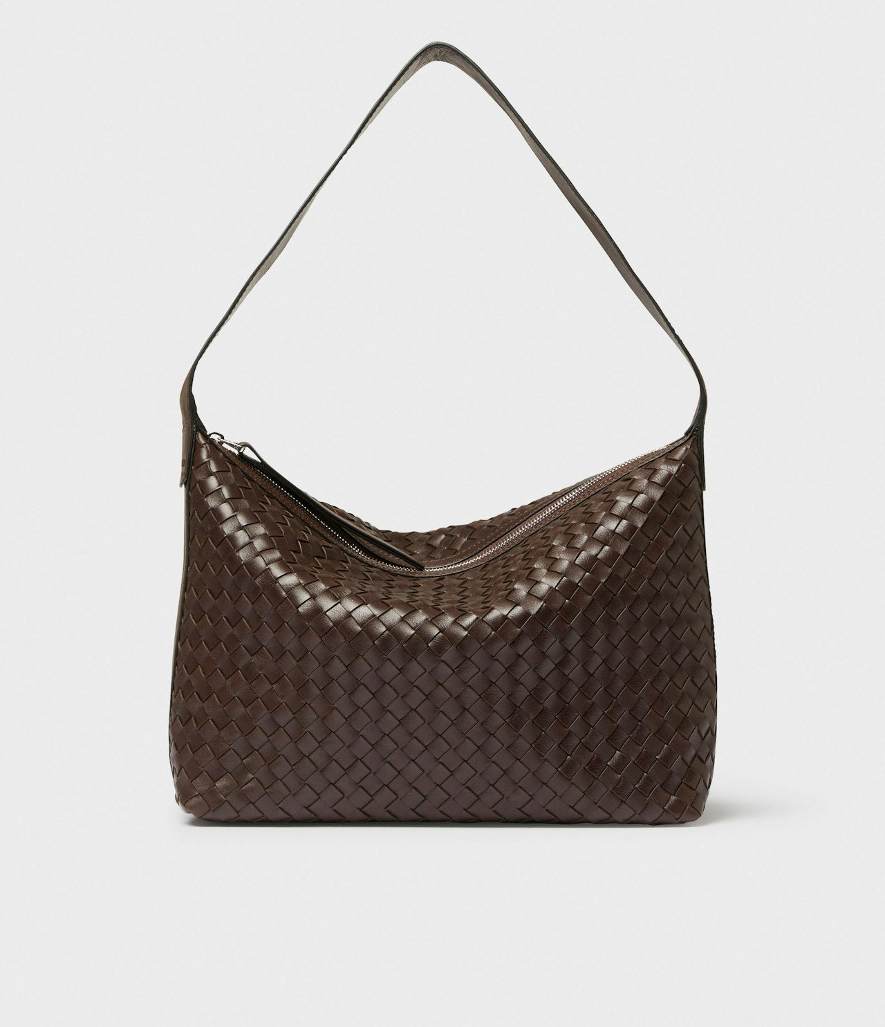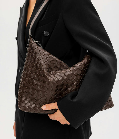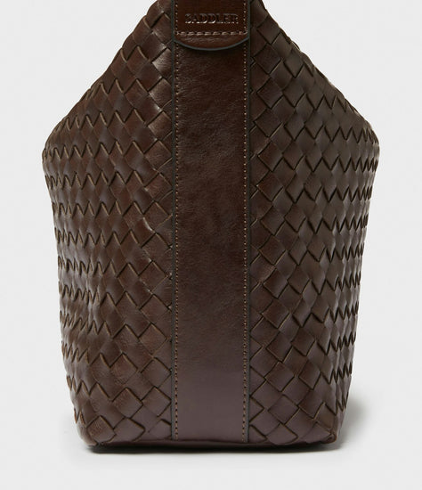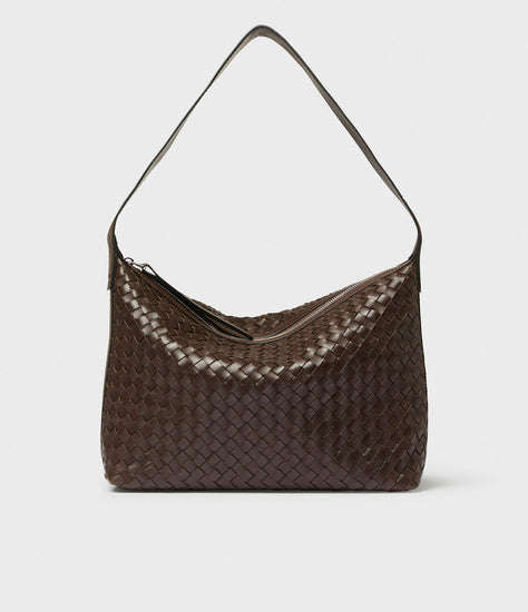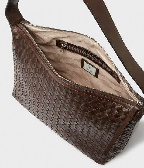 Axelremsväska Glan från Saddler. En rymlig handväska i stort format och vackert flätat läder inspirerad av traditionellt hantverk. Glan handväska är tillverkad av brunt, lite rått läder med en lätt glans. Väskan blir mjukare vid daglig användning. Hoboväskan förhöjer din vardagslook, men passar också perfekt till kvällen. Läderväskan har ett stort huvudfack med dragkedja i metall samt en slip in-ficka och en ficka med dragkedja på insidan. Den rymliga väskan har plats för alla dina viktiga saker plus lite till. Väskans handtag är 55 cm och designad för att bäras på axeln. Spännet är tillverkat av blank silverfärgad metall. Lädret i den här produkten är av högsta kvalitet och har behandlats i ett garveri certifierat av Leather Working Group.