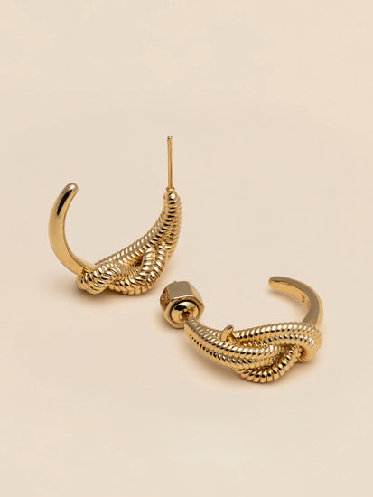 Dessa handgjorda örhängen, pläterade i 18K guld, är själva förkroppsligandet av en konstnärlig själ. Genom motivet av en repvriden knut har vi skapat dessa unika örhängen.