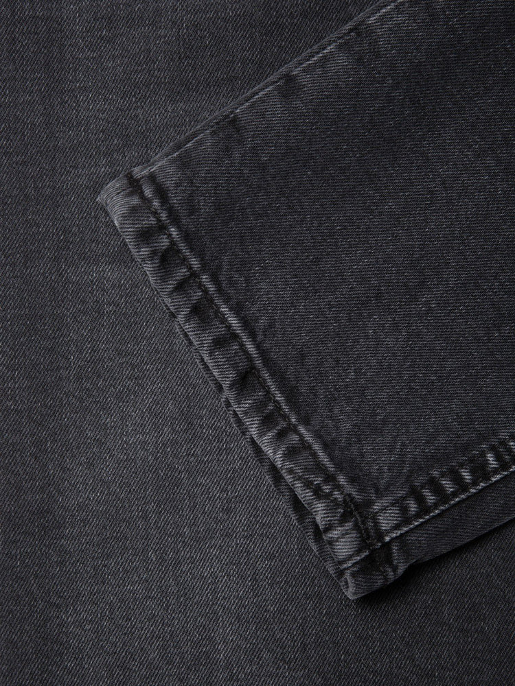 Slim fit stretchjeans med raka ben i en trendig mellangrå tvätt. Den slitna, urtvättade looken ger en avslappnad känsla med attityd. Tillverkade av mjuk, ekologisk bomull för en hållbar stil och maximal komfort.