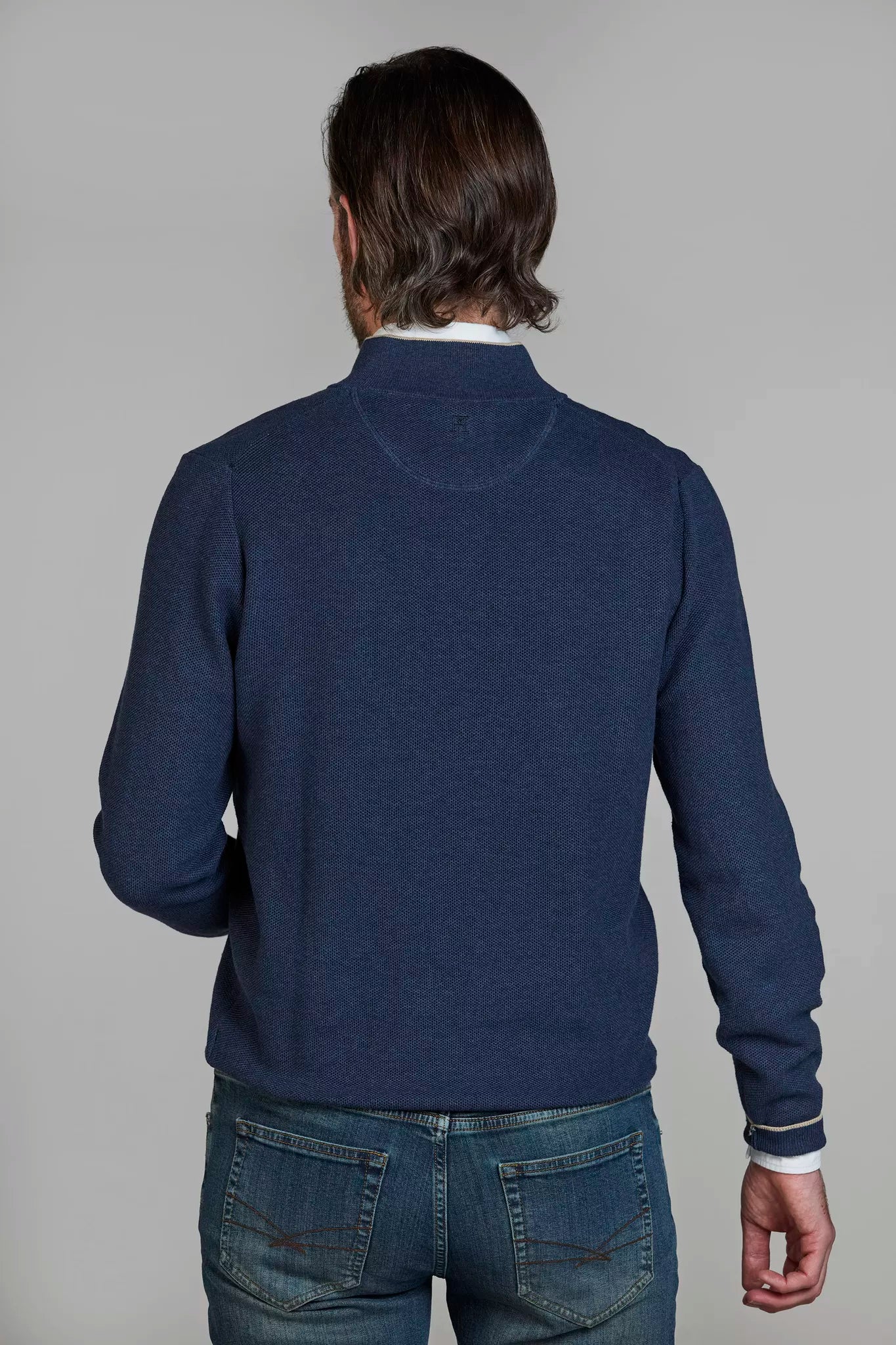Denna stilrena stickade tröja med halvzip och struktur i tyget är ett perfekt plagg för både avslappnade och mer uppklädda tillfällen. Tillverkad i mjuk bomull med en finstickad 14gg-kvalitet, ger tröjan både värme och en sofistikerad look. Den subtila texturen i tyget tillför en extra dimension av elegans, medan halvzip-detaljen gör det enkelt att justera stilen efter behov. Ett mångsidigt och bekvämt plagg som passar perfekt i alla garderober.
