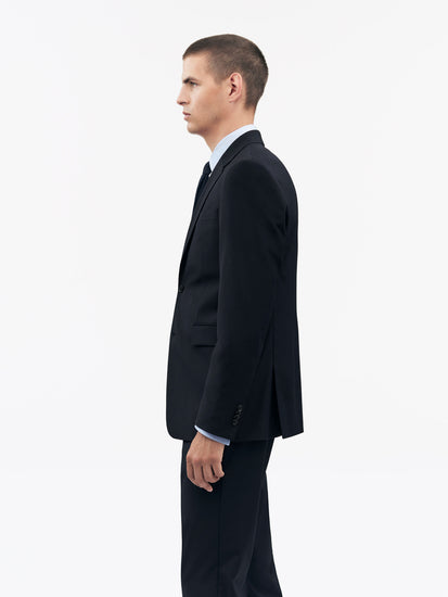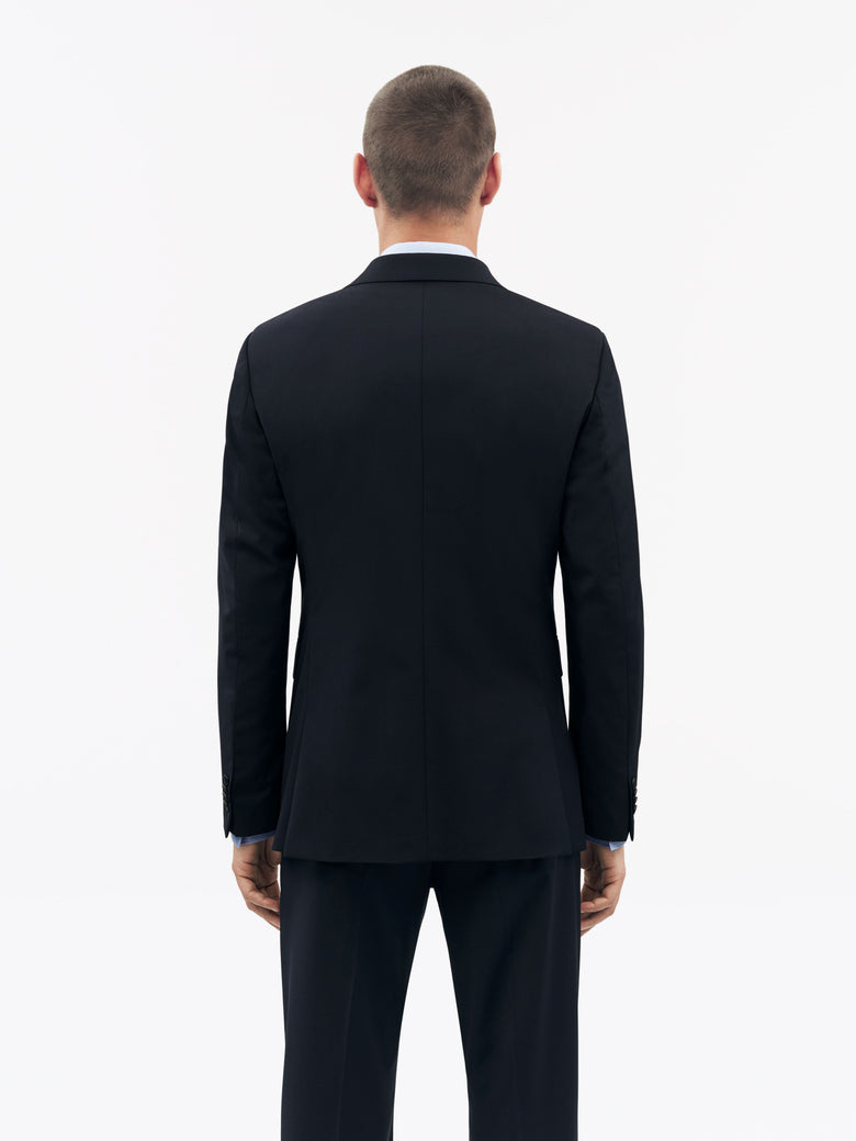 Justins Slim-Fit Kavaj från Tiger of Sweden är en stilren och modern kostymkavaj med en smal passform. Tillverkad i en hållbar blandning av återvunnen polyester och ull (54% återvunnen polyester, 44% ull, 2% elastan), erbjuder den både komfort och elegans. Kavajen har en tvåknapplåsning, breda slag, och mjuka axlar för en stilren silhuett. Kissing buttons på ärmsluten och sidoslitsar i ryggen ger en extra detalj. Den enfärgade väven ger kavajen en tidlös och sofistikerad känsla, vilket gör den perfekt för både affärs- och festliga tillfällen.