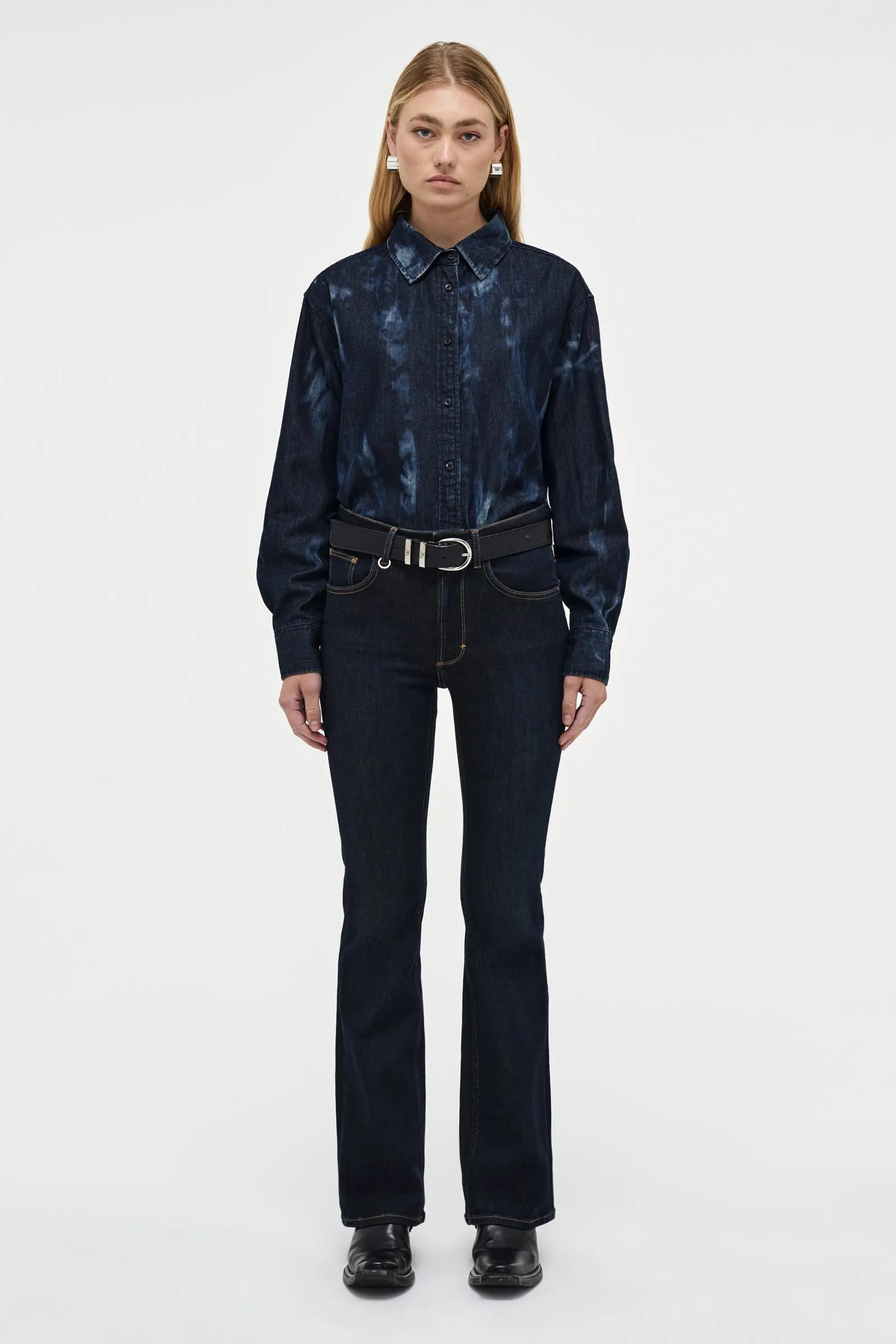 Kara Boot är en slim fit-jeans med bootcut och normalhög midja, tillverkad i premiumdenim med komfortstretch. Den tilltagna längden och den skräddarsydda benformen skapar en smickrande, förlängande silhuett. Med klassisk 5-ficksdesign och gylf med dragkedja kombinerar den funktionalitet med modern elegans. Detaljerad med Neuw Denims karakteristiska reparationssöm och nyckelring i midjan.