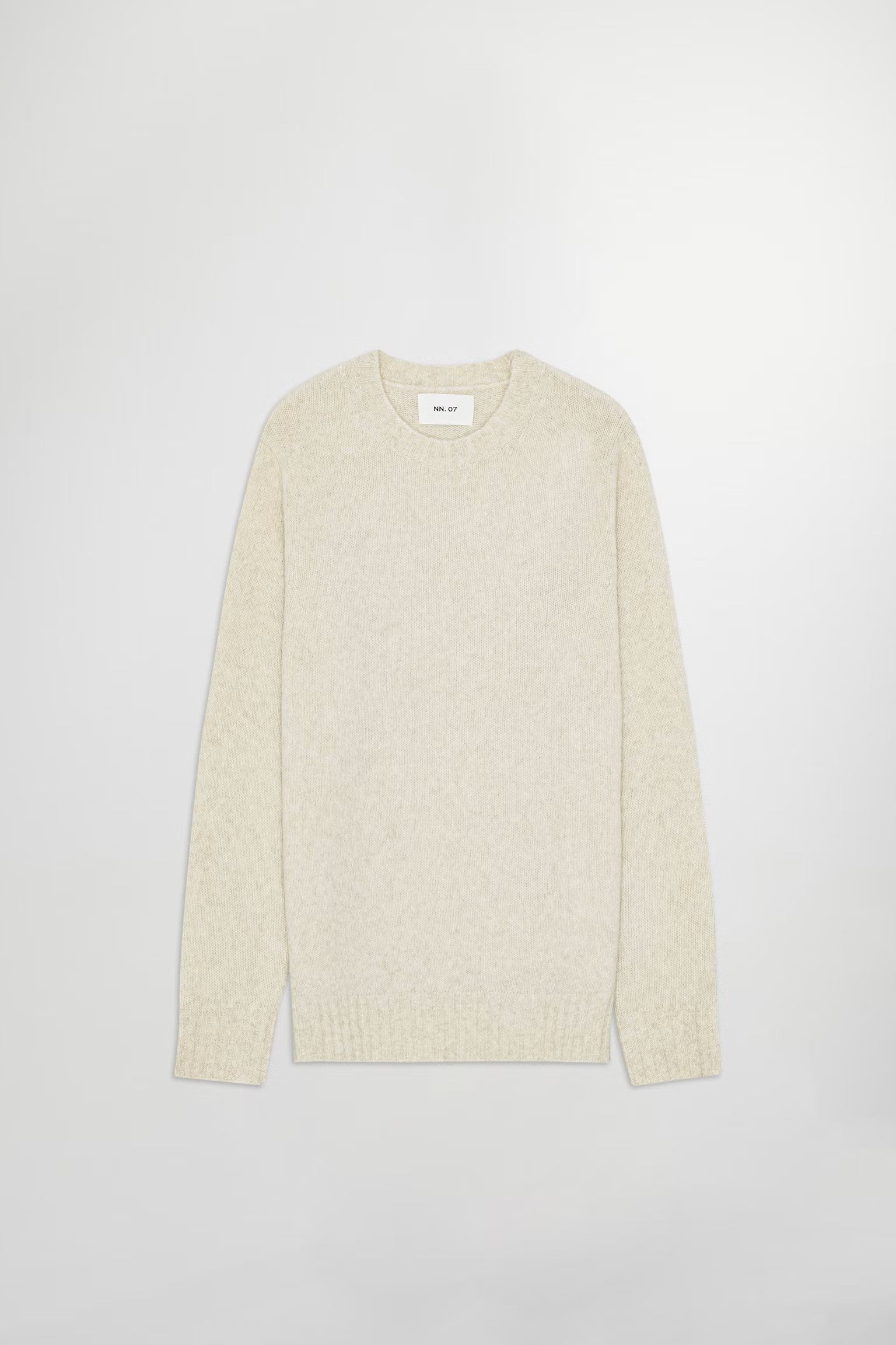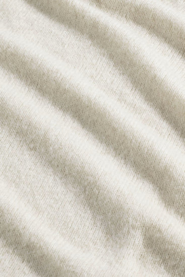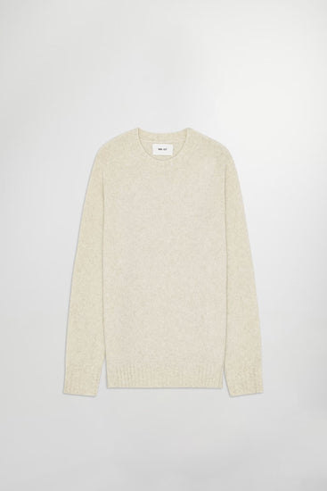 Gosig tröja i ullblandat tyg med axelparti som faller bakåt, diskreta modemärken och bred ribbstickning.