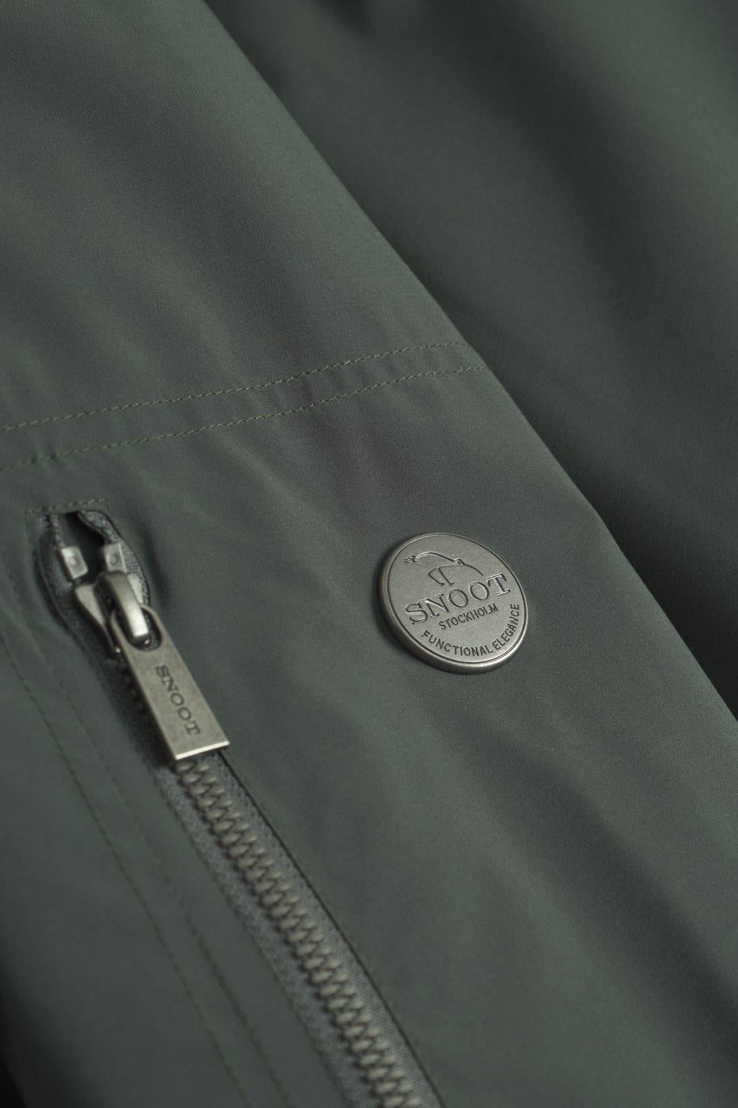 Vinterversionen av Livorno-jackan Snoot. Inspirerad av Snoots klassiska M65-jackor med totalt fem fickor framtill, varav tre har vattentäta dragkedjor. I kragen är jackan försedd med en gömd huva. Snoot-signaturer på den här jackan som logotypstiftet i metall och karbinkroken. Alla sömmar är tejpade för att göra jackan helt vattentät.