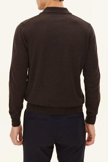 Regular Fit Piké Extra Fine Merinoull - Brown Flannel