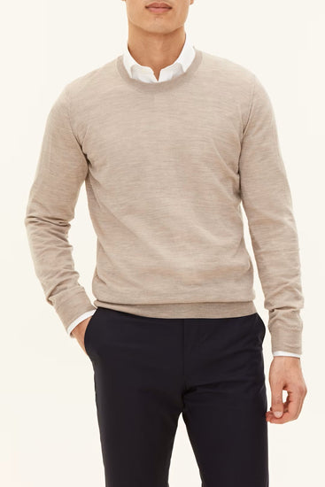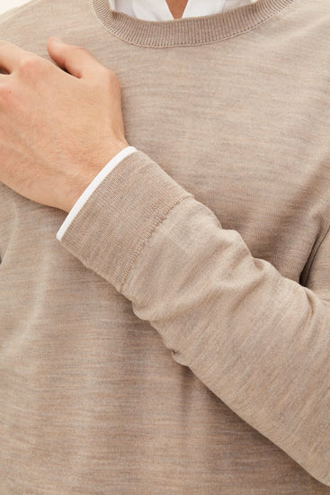 Regular Fit Rundhalsad Tröja Extra Fine Merinoull - Baked Beige