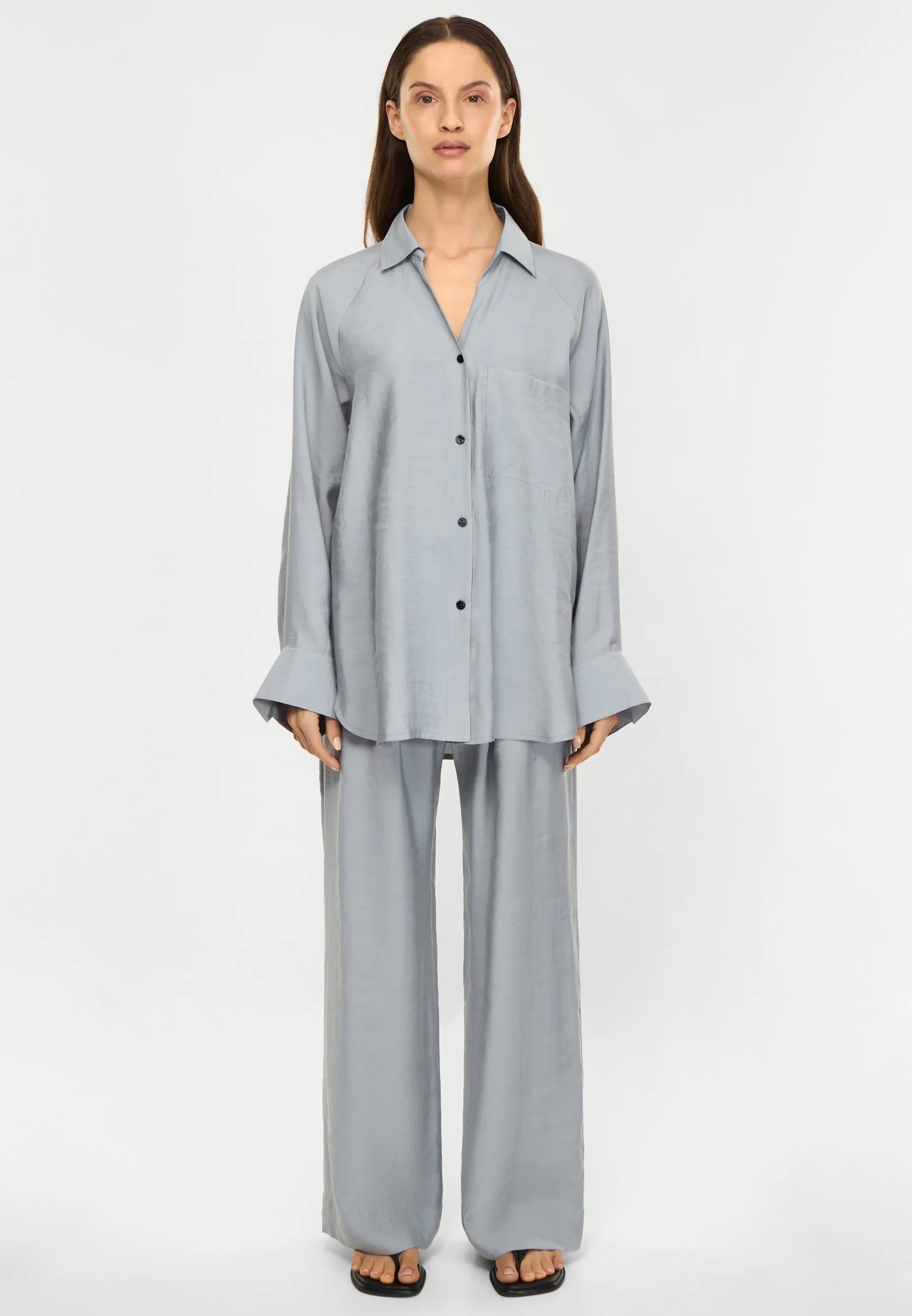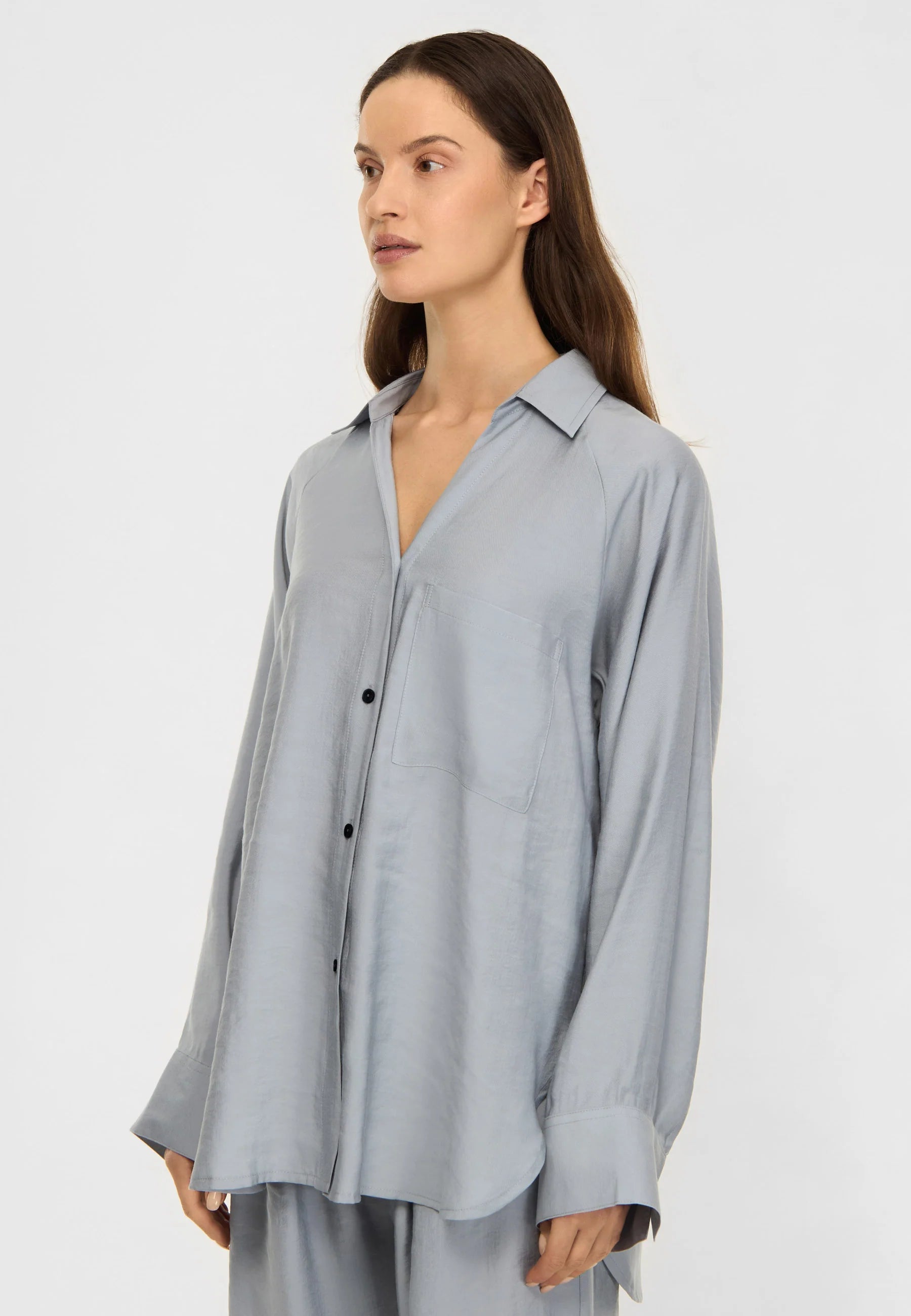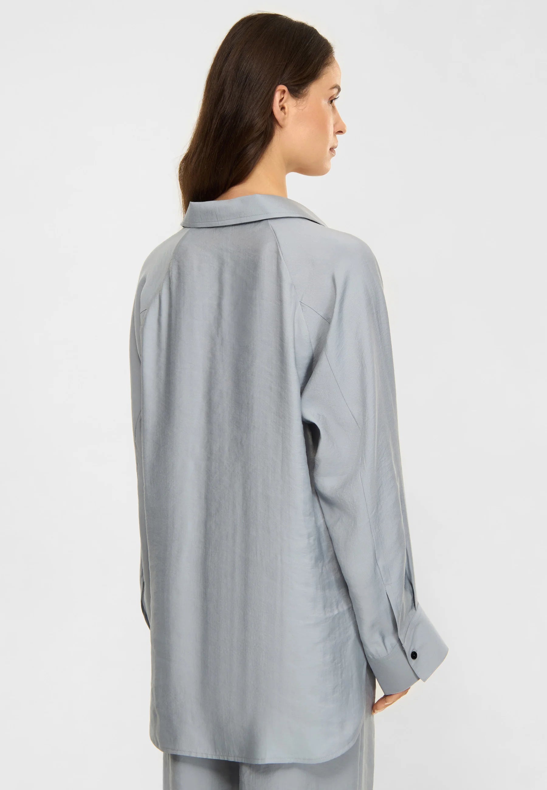 Milena är en skjorta med avslappnad passform, tillverkad i Modal Blend. Materialet är mjukt, lätt och draperande, vilket ger plagget en känsla av ”lättare än luft”. Detaljer inkluderar en öppen V-ringning, raglanärmar och en rundad fåll med höga slitsar i sidorna. Bär Milena tillsammans med Lana för en komplett sommar-outfit.