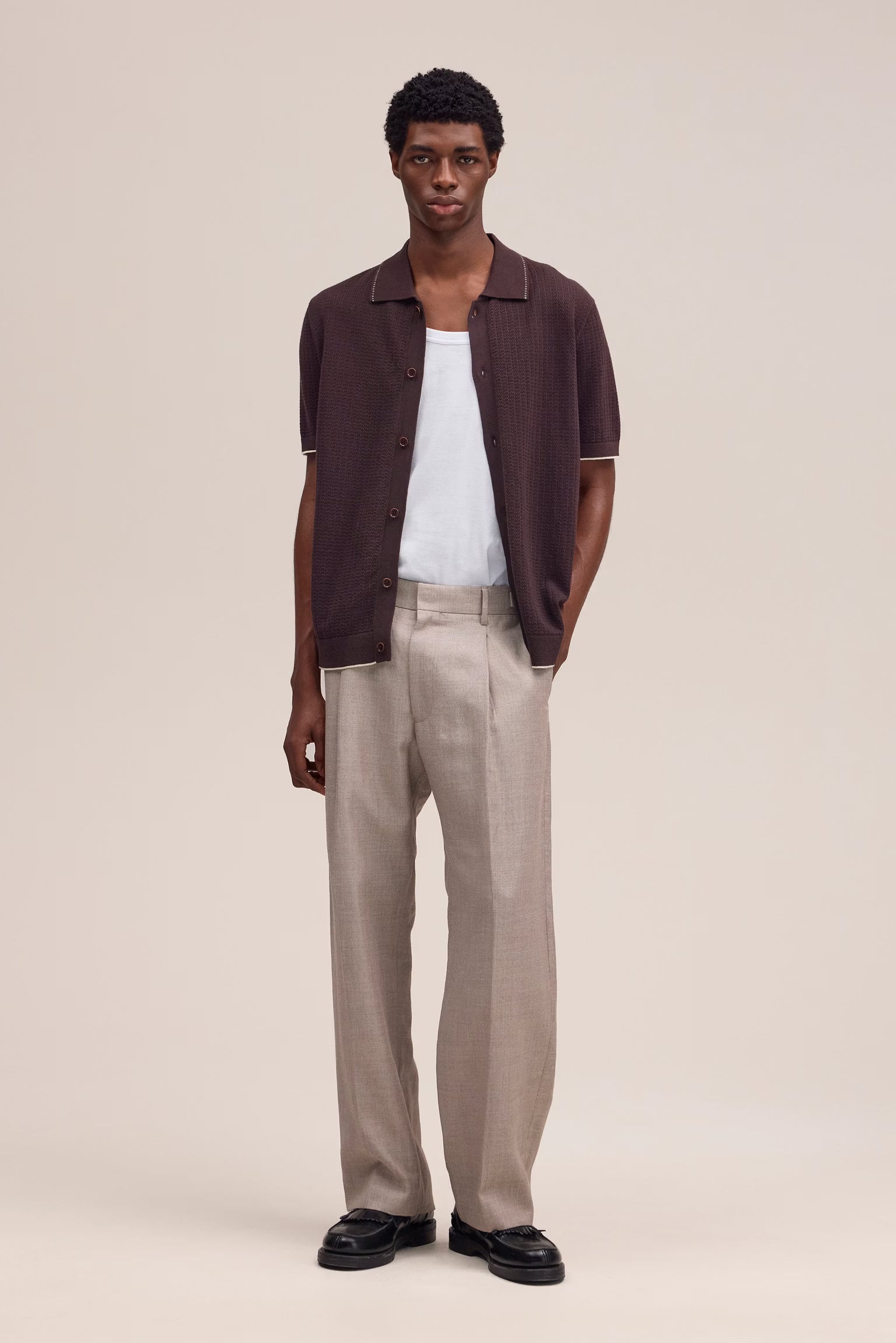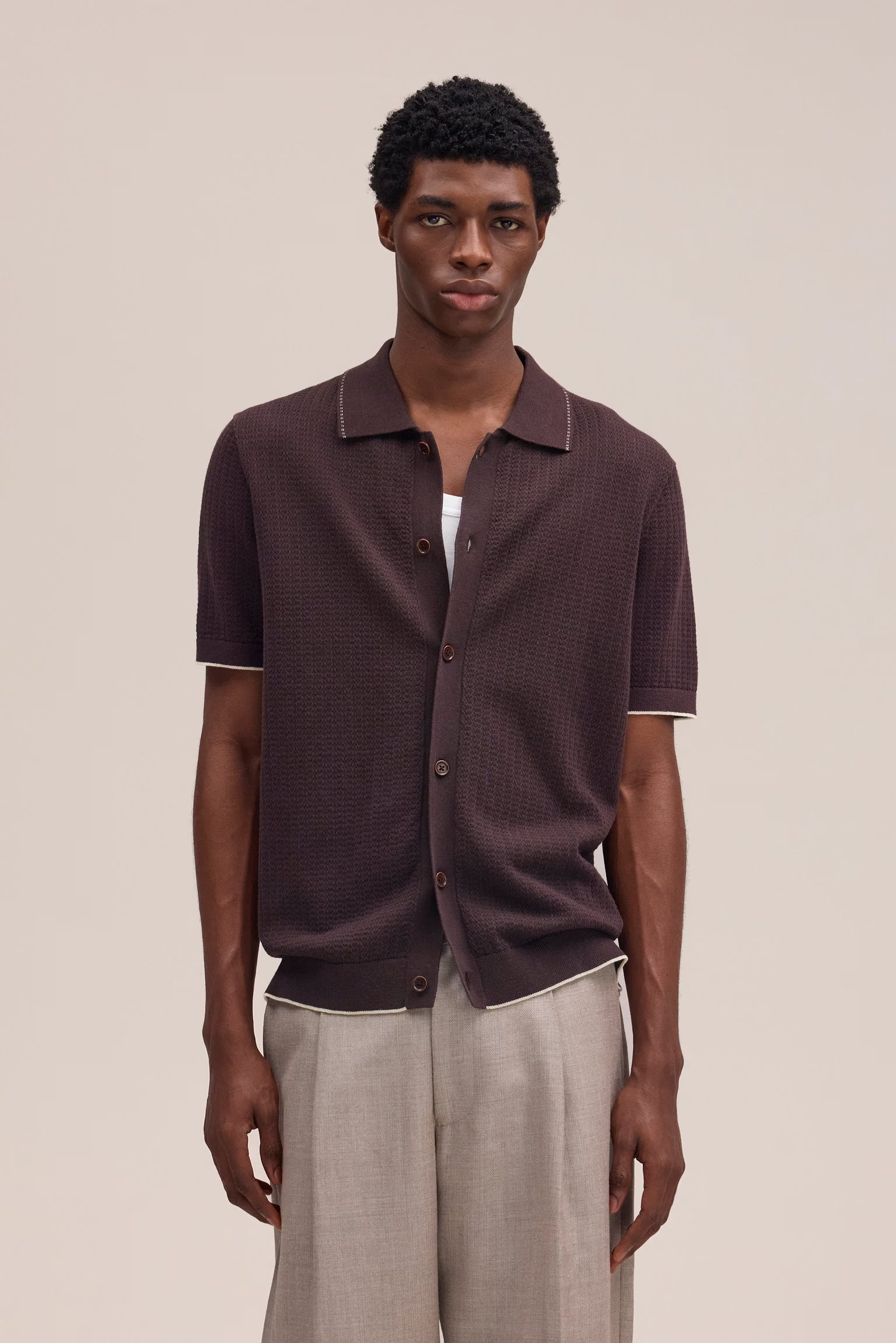 Bomullspiké i regular fit med krispig, texturerad stickning och kontrastdetaljer. Känns lätt och fräsch mot huden och avslutas med en ren knappslå och släta Corozo-knappar för ett sofistikerat, avslappnat uttryck.