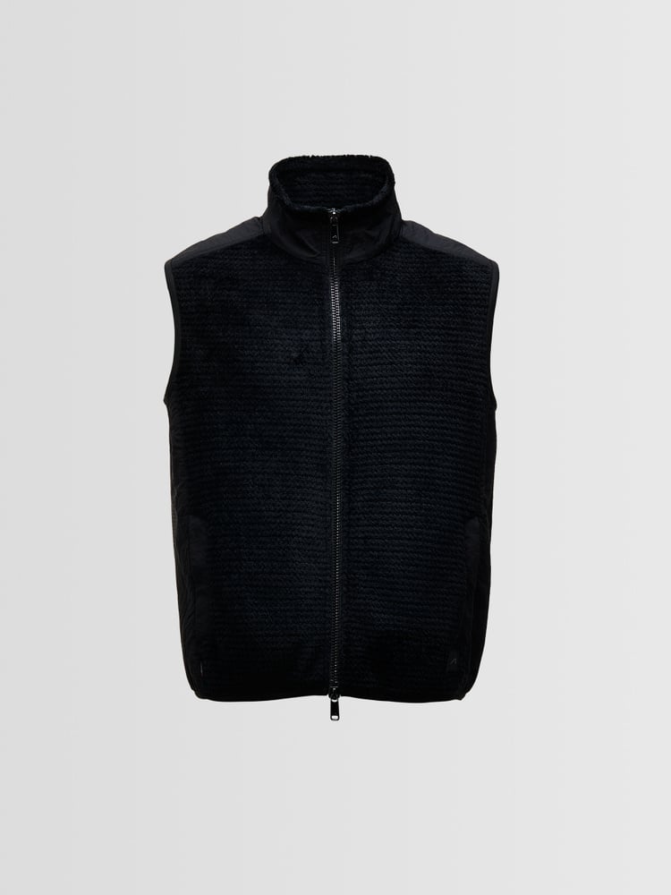 Väst i high loft-fleece tillverkad av ultramjuk, högpresterande återvunnen polyesterfleece med paneler i återvunnet, krinklat ripstop-tyg. Den avskalade, moderna designen och de mångsidiga färgalternativen gör den till ett självklart inslag i garderoben – både för friluftsaktiviteter och vardagligt bruk.