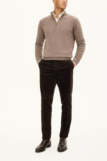 Långärmad tröja i half zip-modell tillverkad i supermjuk ull och kashmir. Perfekt att bära som ett extra värmande lager under kavajen eller som den är till ett par uddabyxor.