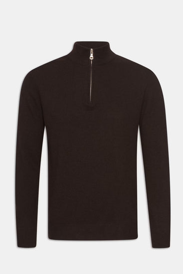 Regular Fit Half Zip Tröja Ull-Kashmir - Brown Flannel