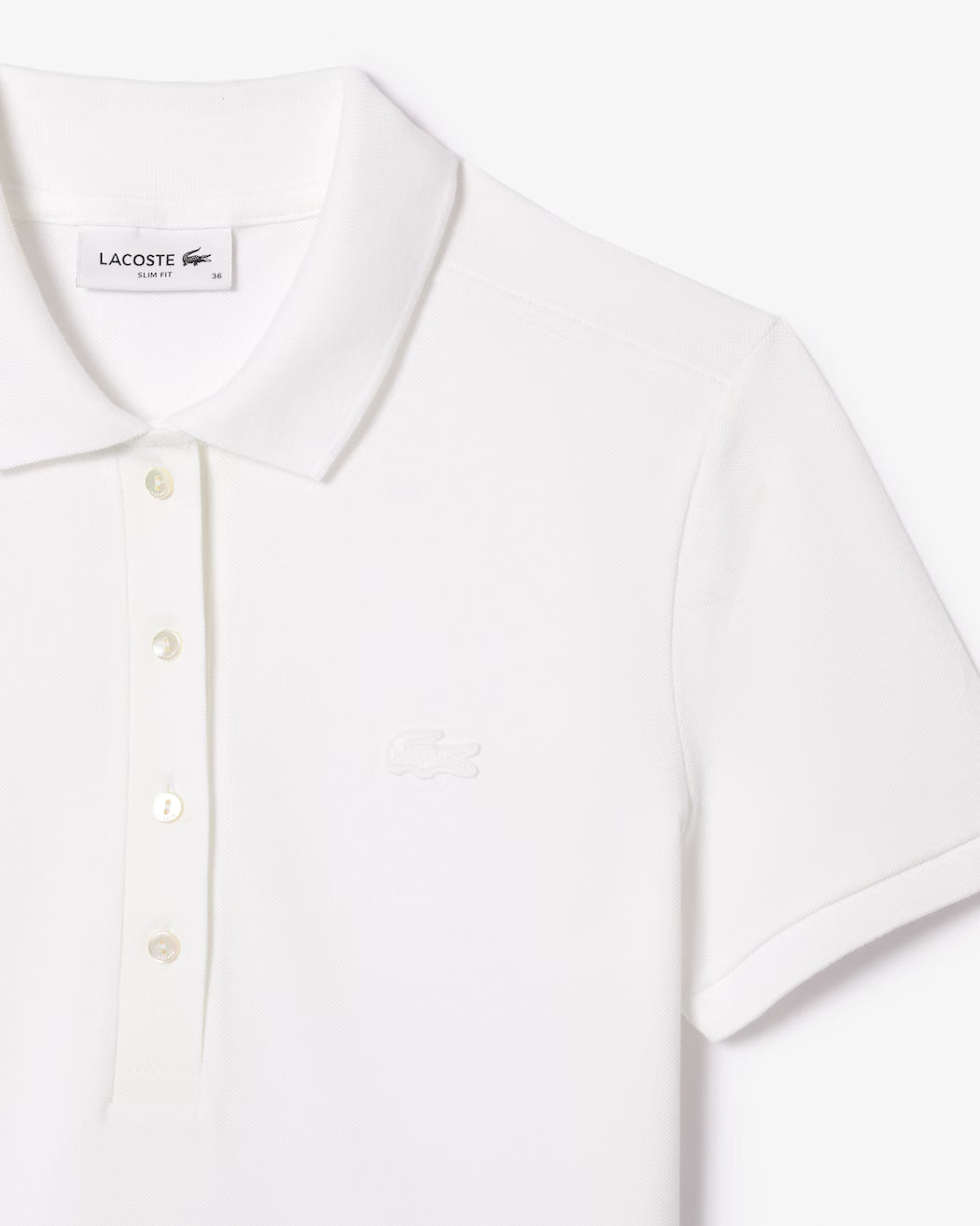 L.12.D-polon, damversionen av den ikoniska pikétröjan som uppfanns av René Lacoste år 1933, har en smal passform och en djup knappslå. I stretchig petit piqué uttrycker den modern elegans från Lacoste och passar perfekt till alla stilar – från klassiskt till street.