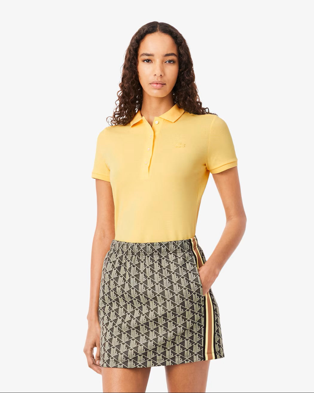 L.12.D-polon, damversionen av den ikoniska pikétröjan som uppfanns av René Lacoste år 1933, har en smal passform och en djup knappslå. I stretchig petit piqué uttrycker den modern elegans från Lacoste och passar perfekt till alla stilar – från klassiskt till street.