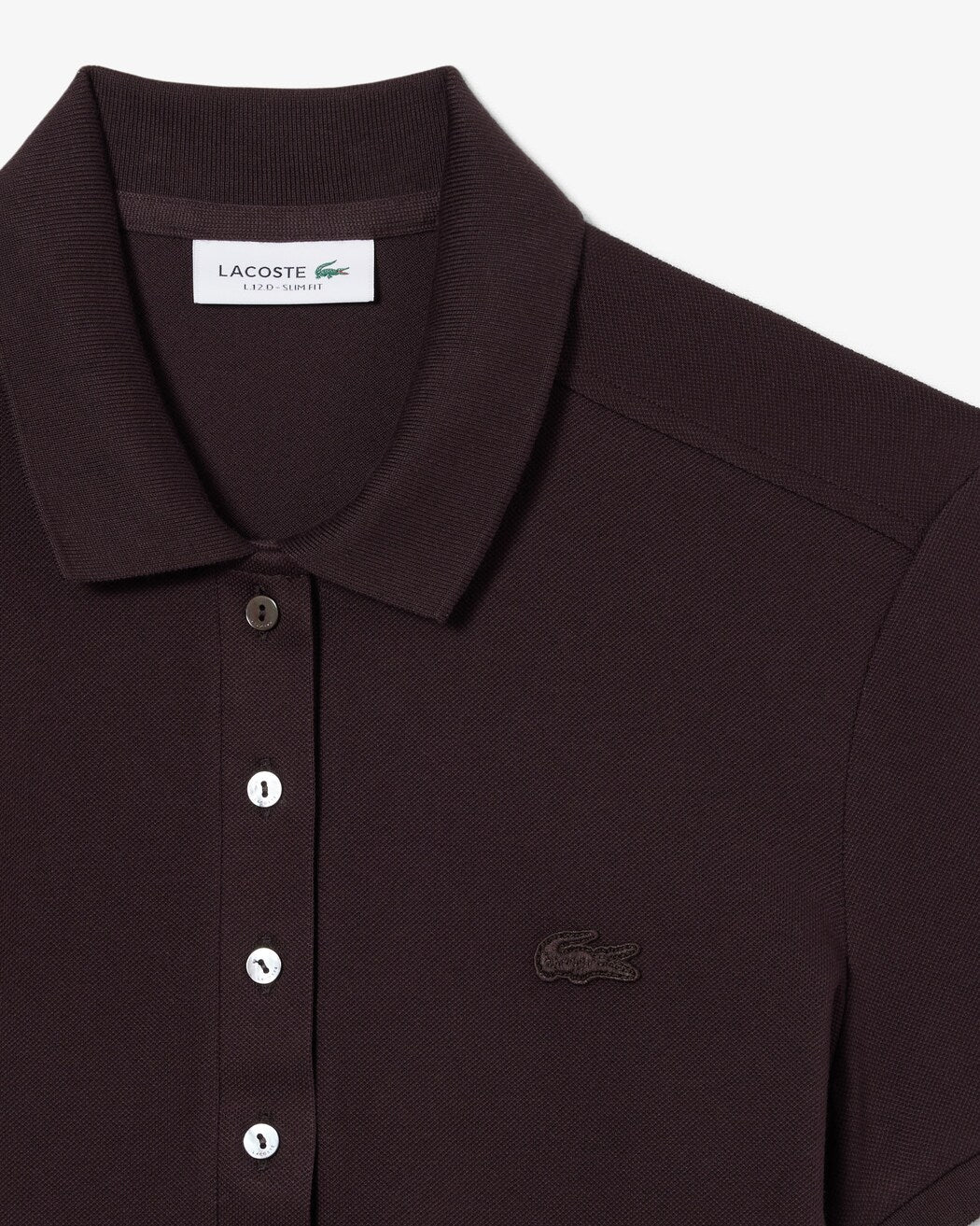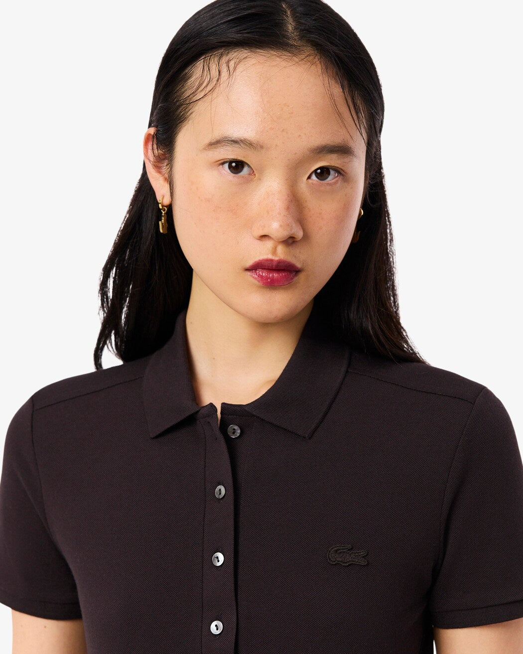 L.12.D-polon, damversionen av den ikoniska pikétröjan som uppfanns av René Lacoste år 1933, har en smal passform och en djup knappslå. I stretchig petit piqué uttrycker den modern elegans från Lacoste och passar perfekt till alla stilar – från klassiskt till street.