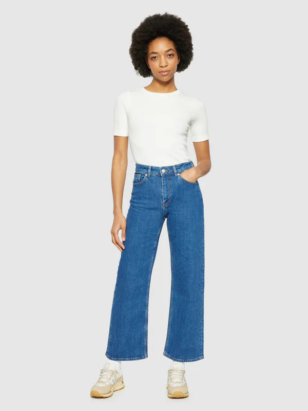 Vår ribbade T-shirt är det perfekta valet för din sommaroutfit. Den är tillverkad i en mjuk blandning av lätt ekologisk bomull och en liten mängd elastan för extra komfort. Designad i en smal passform med medellånga ärmar och en rundad halsringning.