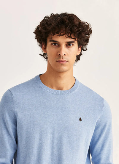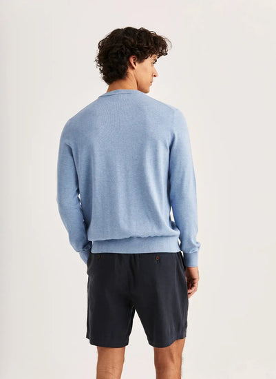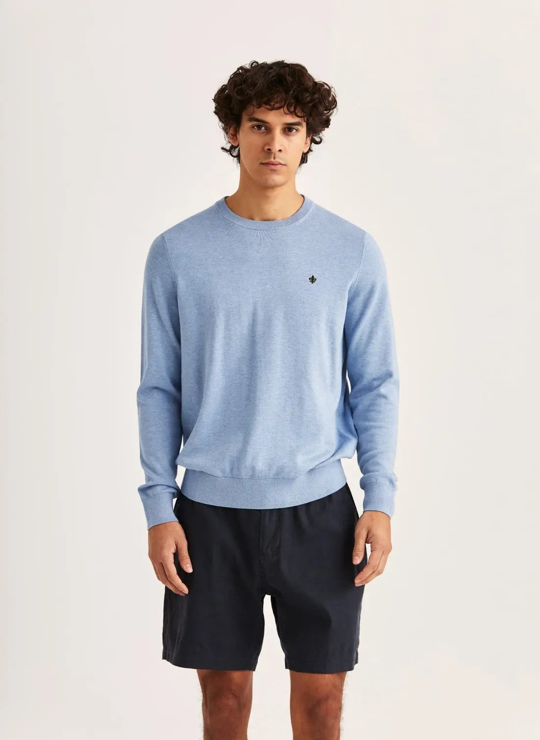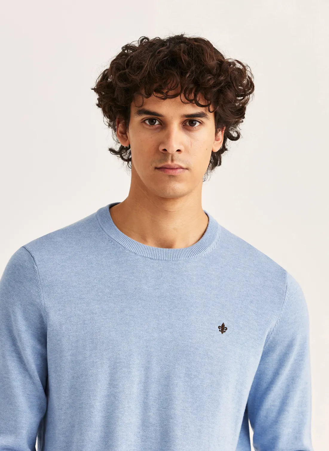 Riley Oneck är stickad i förstklassig bomull med en len men stadig känsla, tillräckligt lätt för att hängas över axlarna, men med struktur som håller formen. Den broderade liljan på bröstet ger en karakteristisk Morris-detalj. Avslappnad, elegant och oändligt mångsidig.