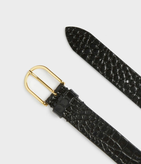 Läderbälte Safira från Saddler. Ett stilfullt dambälte med ett diskret spänne i en halvrund form. Gör sig fint så väl till jeansen som den dressade byxa eller i midjan över klänning.Tillverkad i vegetabiliskt garvat full grain-läder med ett fint spänne i guld-färgad metall. Lädret i den här produkten är av högsta kvalitet och har behandlats i garveri certifierat av Leather Working Group. Bältet i storlek 95, är konstruerad med en skruv som gör det möjligt att korta ner och anpassa storleken på bältet.