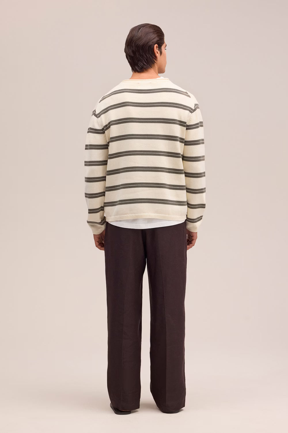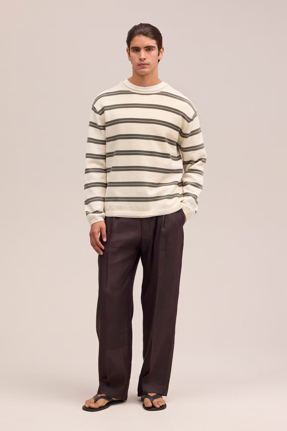 En randig rundhalsad tröja i relaxed fit med mjuk handkänsla. Detaljerad med rullkantad halsringning och korta ribbkanter för en mjuk finish. Bär den med vita linnebyxor för en krispig sommarlook.