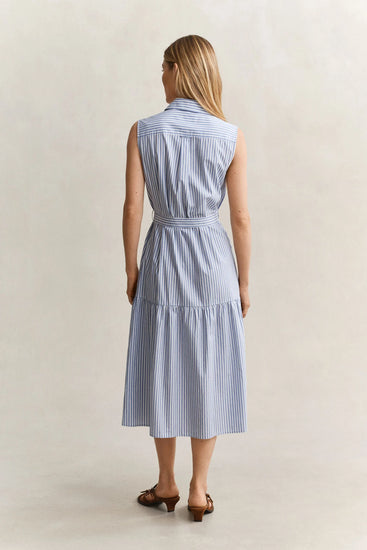 STRIPE CTN SLEEVELESS DRESS - HYDRANGEA BLUE