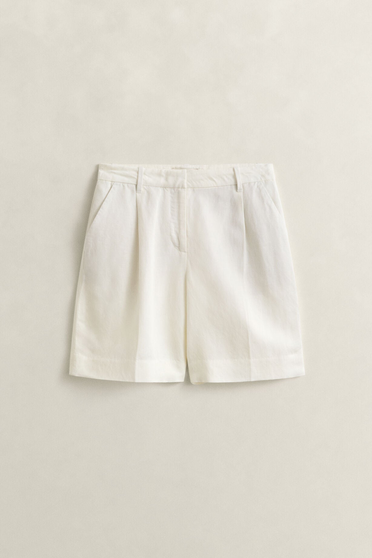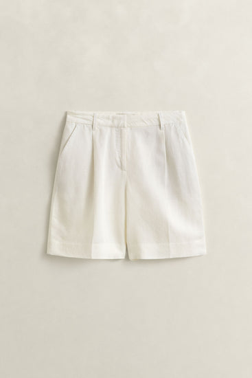 TAILORED LINEN BLEND SHORTS - EGGSHELL